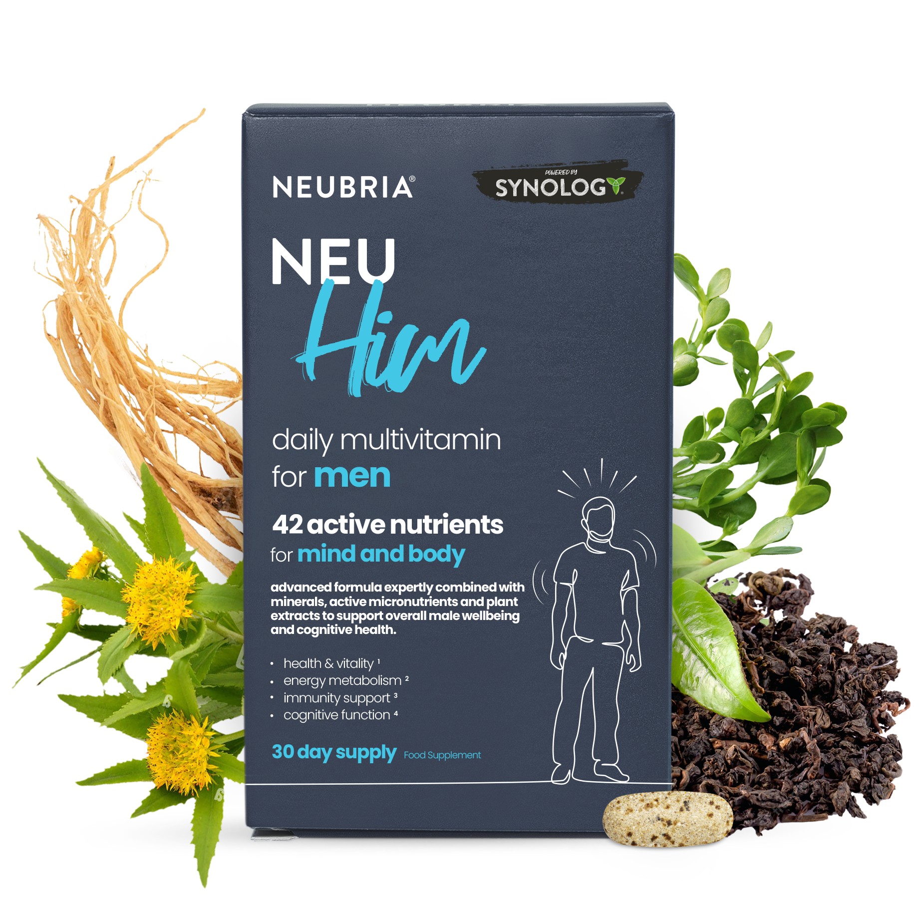 Neu Him combines essential vitamins, minerals, and plant extracts tailored to men's health needs: Vitamin D: Supports bone and muscle health. B Vitamins: Promote energy and mental clarity. Zinc & Magnesium: Aid in testosterone production and stress relief. Selenium: Enhances reproductive health. Coenzyme Q10: Supports heart health and energy. This powerful blend helps men maintain optimal health and performance.